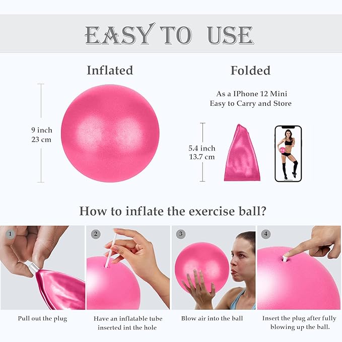 - EASY TO USE - The Balance Ball can be easily infalted with included tube and breath, pump not required. And a folded size as iphone 12 mini makes the ball convenient to carry and store.