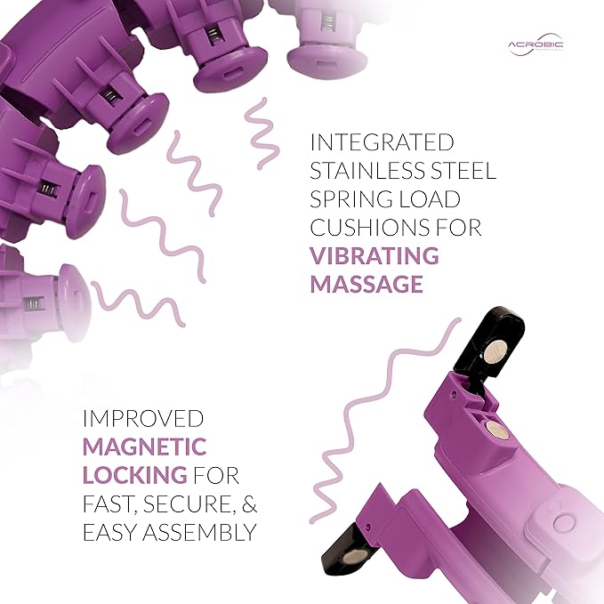 - ⭕ 2 in 1 Fitness & Massage: Using this fitness equipment, you can burn calories, body fat, and lose inches off your waist and hips, while boosting your cardiovascular fitness. According to Mayo Clinic, Hula hooping can burn as many calories as other dance aerobics. A Steady rhythm of hooping will cause heart rate increase and blood flow, resulting in burning calories. Integrated spring cushions for vibrating massage adds extra value and better results to your workout.