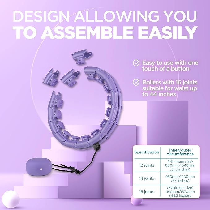 - ADJUSTABLE, and BUILT FOR YOUR COMFORT – Fits waists ranging from 25–45 INCHES, with 24 expansion joints to adjust your smart hoop to the perfect CUSTOMIZED SIZE.
