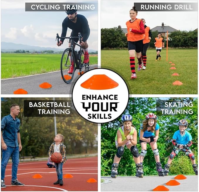 - ⚽Incredibly Versatile: A sports equipment with multitude of uses at all training levels. Use these soccer cones for training kids, dribbling, target practicing, agility & dog training, or setting up an obstacle course, your imagination is the limit