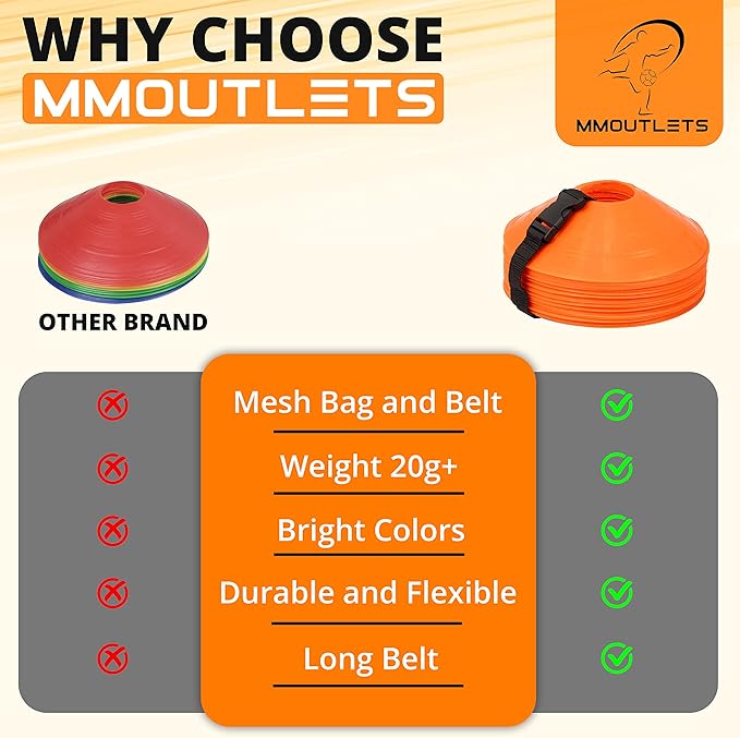 - ⚽High-Visibility: Thanks to the bright colors that makes these football cones easily spottable in the field, even in low light, improving your efficiency. The color does not bleed or stain your hands neither do they fade off, making them a lasting investment