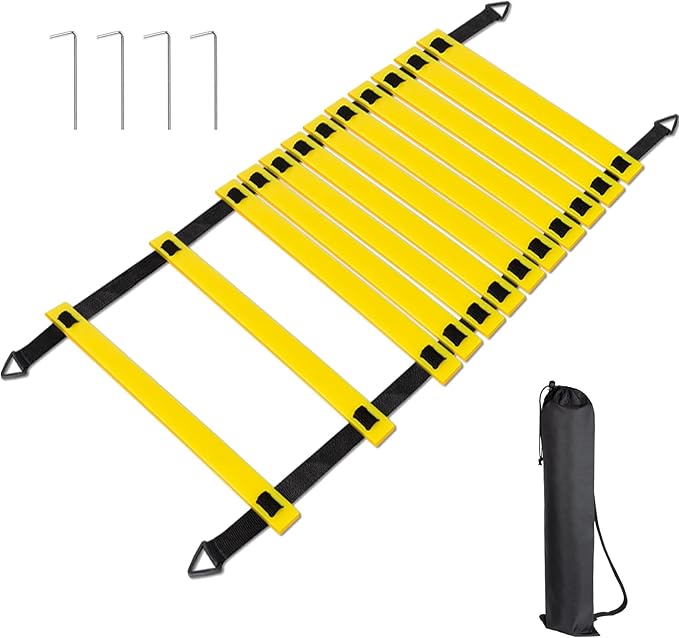 - 【Adjustable Agility Ladder】Our agility ladder is designed with 12 rungs, the spacing between the rungs can be adjusted to 15 inches using nylon straps, and the total length can reach 20 feet. Suitable for different levels, skill sets and exercises to improve your speed, agility, coordination and leg strength.