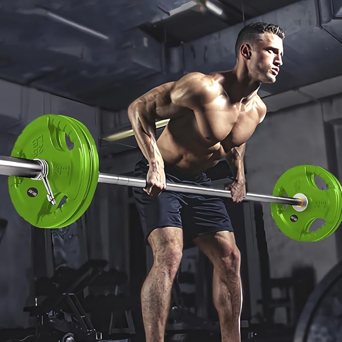 - 💪UPGRADE MATERIAL: The quality of our rubber weight plates are durable and sturdy. It is safer and more practical to drop and lower after a lift exercise. The comfortable grip also give you a good use experience.