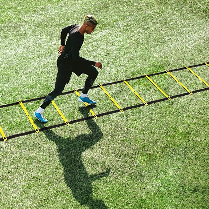 - [TRAIN ANYWHERE & BUILD UP YOUR SKILLS] - Keep your fitness level at its peak with this versatile Agility Ladder. Ideal for athletic training, football, soccer, basketball drills, hockey, lacrosse, tennis, badminton, rugby to increase acceleration, leg strength, speed, core skills, balance, rhythm, and body control.