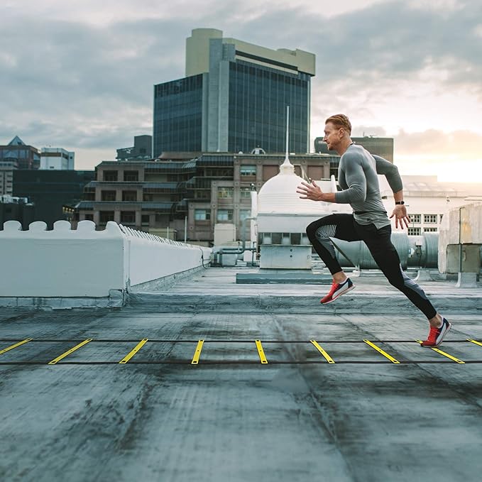 - [TRAIN ANYWHERE & BUILD UP YOUR SKILLS] - Keep your fitness level at its peak with this versatile Agility Ladder. Ideal for athletic training, football, soccer, basketball drills, hockey, lacrosse, tennis, badminton, rugby to increase acceleration, leg strength, speed, core skills, balance, rhythm, and body control.
