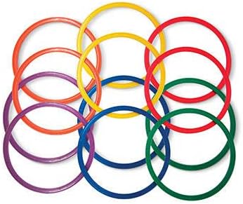 - Set includes 12 circular rings in six colors - red, orange, yellow, green, blue and purple.