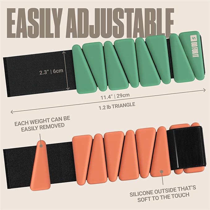 - SAY GOODBYE TO BULKY WEIGHTS: Old-fashioned ankle weights are filled with sand and not customizable. Our wrist weights can be removed so you can choose the total weight, making them 100% customizable. The total weight of the leg weights is 1lb, but each triangle weighs 0.13lb.