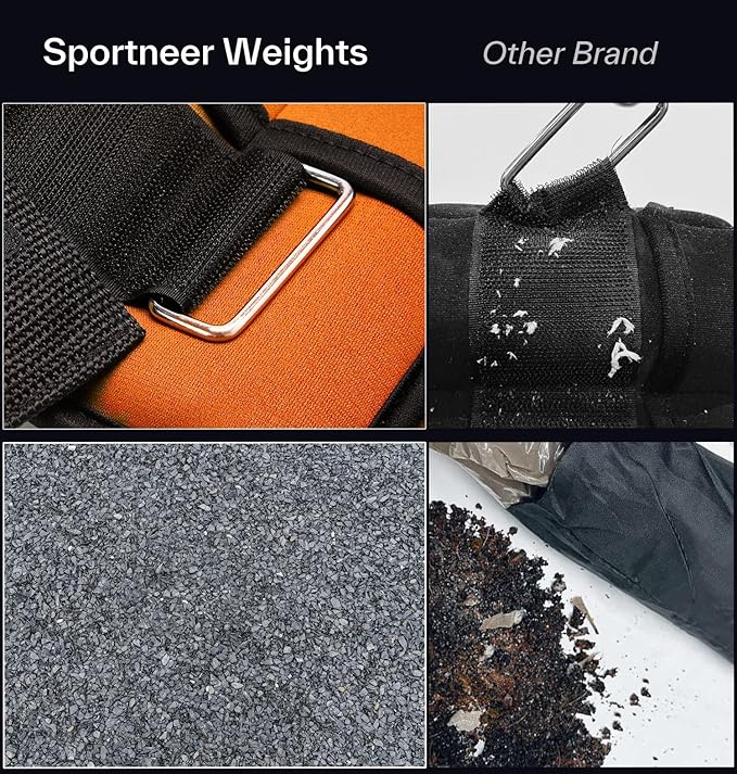 - QUALITY & COMFORT: The Sportneer ankle weights were made of neoprene exterior, reinforced stitching, sturdy outer trim and moisture absorbing material inside, soft, breathable and comfortable, you could feel its softness when hold in your hands.