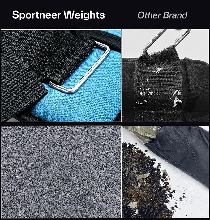 - QUALITY & COMFORT: The Sportneer ankle weights were made of neoprene exterior, reinforced stitching, sturdy outer trim and moisture absorbing material inside, soft, breathable and comfortable, you could feel its softness when hold in your hands