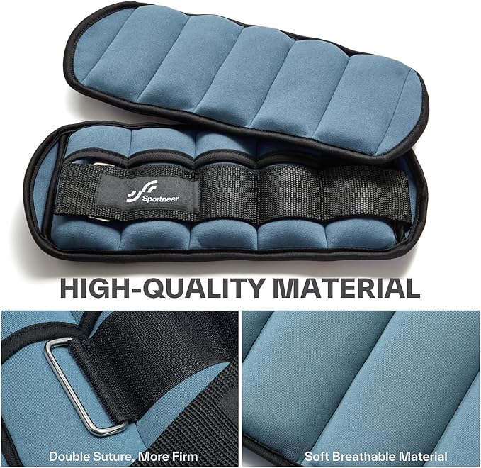 - QUALITY & COMFORT: The Sportneer leg weights are made of neoprene exterior, reinforced stitching, and sturdy outer trim. You could feel their softness when holding them in your hands.
