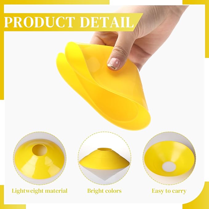 - Eye Catching Color: the soccer cones for drills coming in bright yellow color are placed on the grass, and they will not merge with the color of the grass; Don't worry about stepping on the disc during training and affecting the training effect