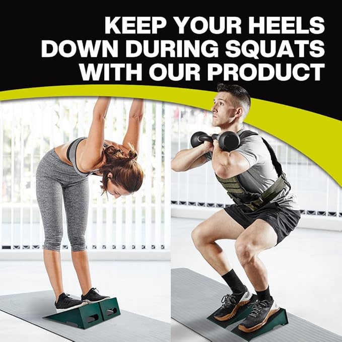 - 🟢 [Slip-Resistant Design] - The Squat Wedge Blocks have grip tape for a safe and stable squatting experience, reducing the risk of accidents or injuries.