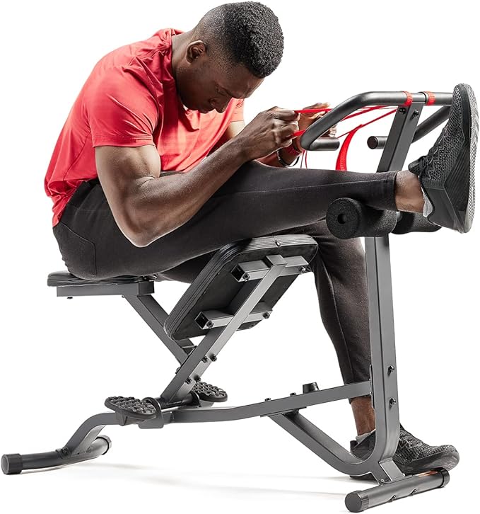 - PIVOTING SEAT AND KNEEPAD: Go further in your stretches with a travel distance of over 24 inches. Large, cushioned seating and knee pad provide exceptional comfort and support.