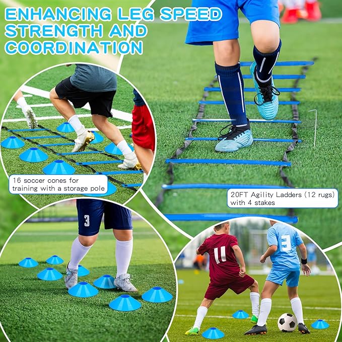 - Unlock Your Potential: the exercise ladders for agility training and other soccer agility training equipment are very suitable for professional physical training such as football, soccer, basketball, lacrosse, volleyball, baseball, softball, tennis, track and field, ice hockey, rugby, etc.; Help improve speed, agility, balance, flexibility fitness, coordination, strength and explosiveness