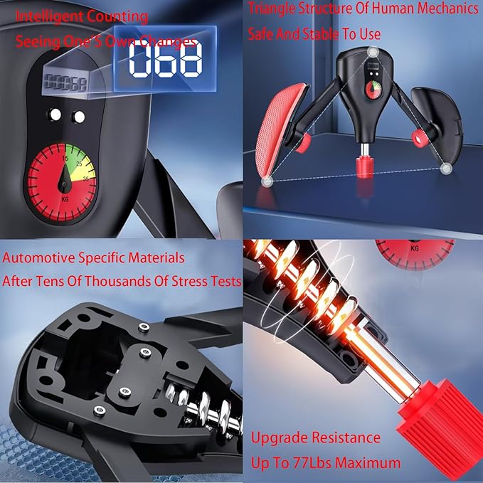 - 🤸♂️【Excellent upgraded design】: Our thigh trainer uses high-end materials such as PP/PA/EVA/alloy steel. The 360 ° rotatable structure is suitable for any leg shape and can adjust resistance between 0-77 pounds. High definition intelligent counting allows you to see every progress you have made. The design of thickened foam on both sides can effectively protect the user's muscles from injury during exercise. Upgrade the strap design to ensure it does not fall off during movement.
