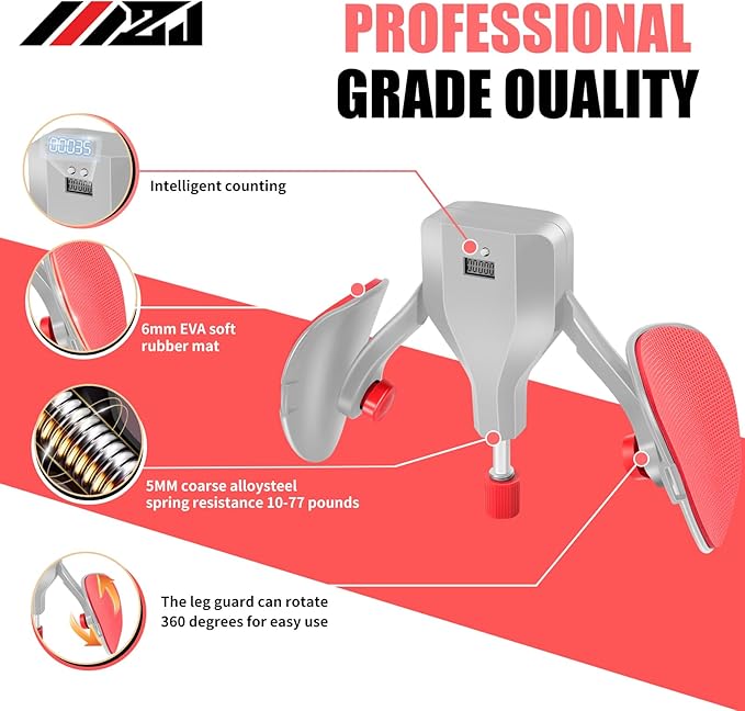 - 【Adjustable Resistance】:Our Thigh Trainer features enhanced steel springs and a labor-saving knob design, making it easy to adjust the resistance values. The visual digital display and resistance values provide a clear sense of exercise intensity, helping you to develop and complete effective workout plans.