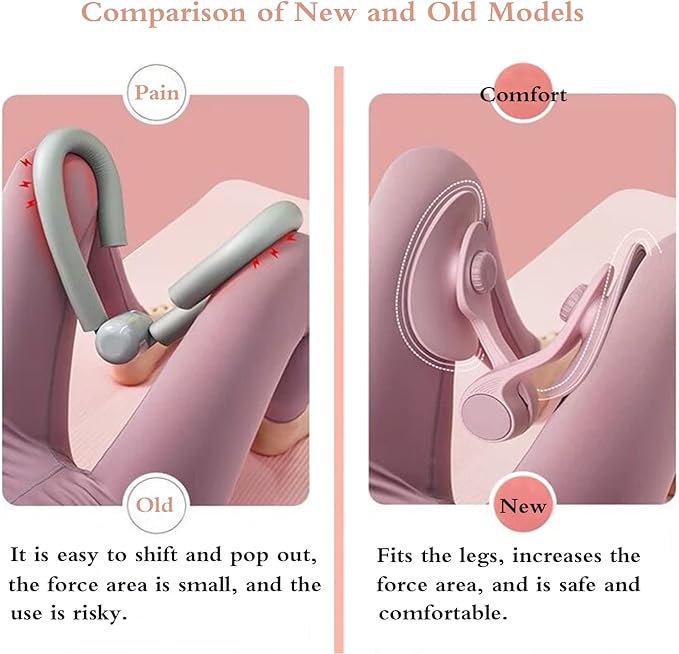 - Premium Material - Our thigh master inner and outer is made of high-quality PP + TPE material, soft and snug contact surface, which is environmentally friendly and light-weight.There is a knob on both sides of the thigh master, peach-shaped concave structure can be rotated 360 degrees until you find an angle that is most comfortable for you.The triangle structure makes the thigh master stable, will not fall off during exercise, exercise effect is more significant.