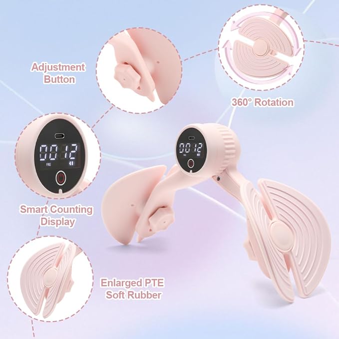- 【WITH COUNTER】 The thigh exerciser is equipped with a smart chip, which can count, understand calorie consumption, and can accurately rec-ord usage data, so that you can understand the intensity of exercise.Suitable for postpartum mothers / people with flat buttocks / sedentary work / people with fat thighs,or worried about the flatness of the buttocks.