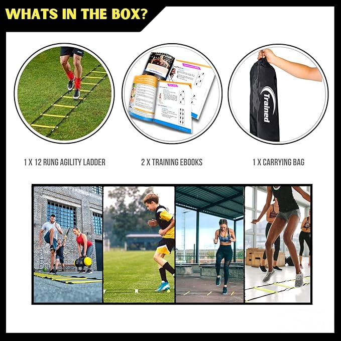 - ⚽ OUR TRAINING LADDER IS PERFECT FOR REACHING YOUR TARGET WEIGHT-LOSS GOALS: Add variation to your workouts with a dynamic exercise plan using our training ladder. Increase your acceleration from a start point using our workout ladder. This agility ladder and cones set will help with safe weight loss while improving your fitness, coordination & cardiovascular health.