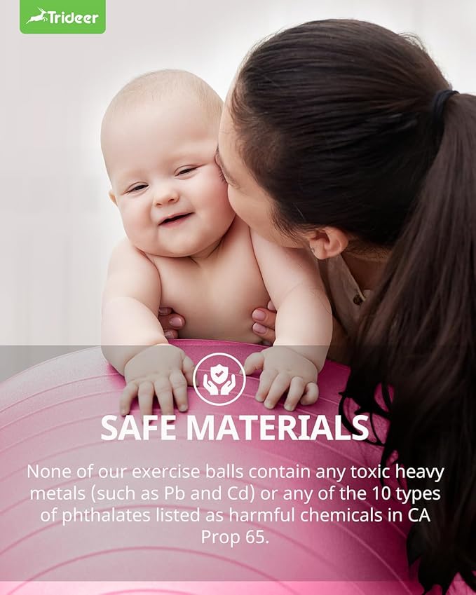 - TOP QUALITY MATERIAL - Our exercise ball proudly stands itself out among the products of the same class. It is strictly weight tested and can resist up to 330 lbs. The strong material is nicely made with non toxic PVC material, thus free of BPA & heavy metals.