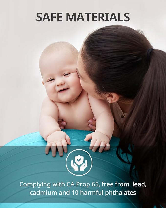 - [High-Quality Material ] -Trideer exercise ball stands out among its peers. Rigorously weight-tested, it effortlessly withstands up to 2200 pounds, catering to individuals with higher body weight. Crafted from sturdy, non-toxic PVC material, it's entirely free from BPA and heavy metals, ensuring a safe choice for pregnant women and babies.