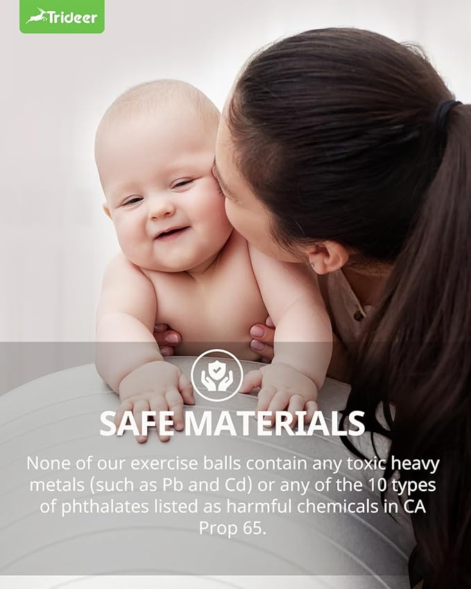 - SAFETY AND COMFORT- The exercise ball is crafted from PVC material; meticulously manufactured to be free from harmful heavy metals such as Pb, Cd, Hg, and 10 other heavy metals; safe for pregnant women and children