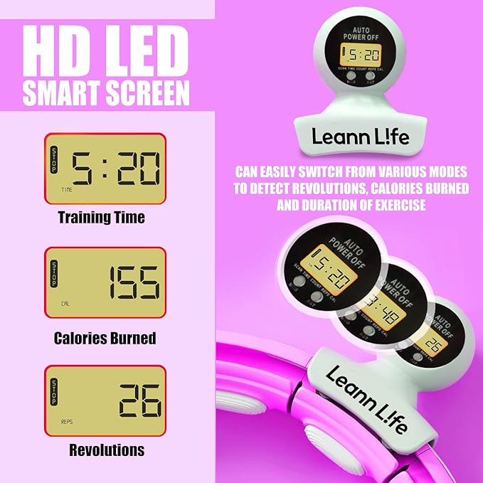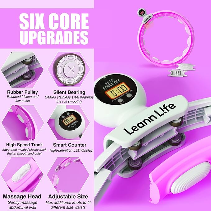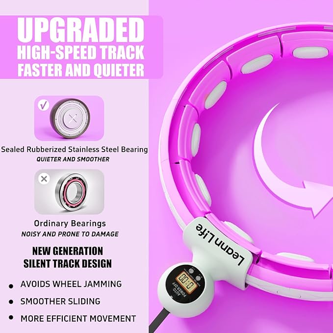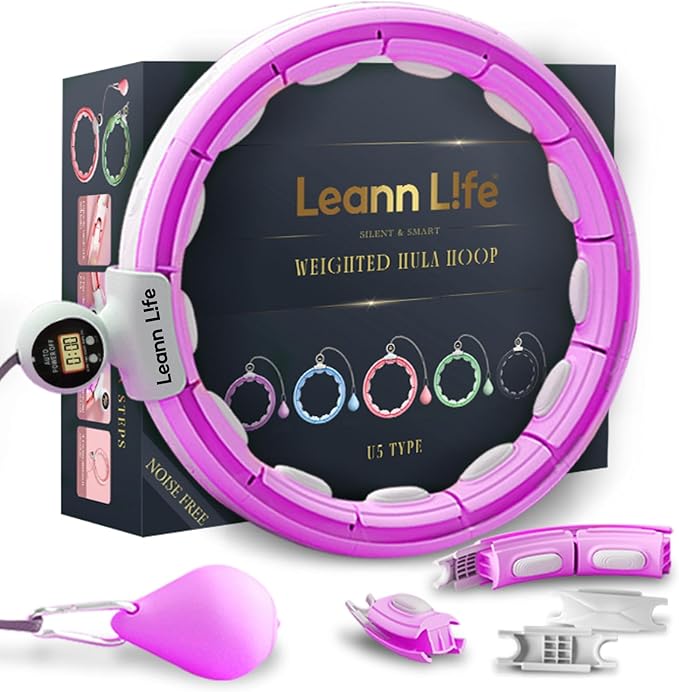 - 【MOST ADVANCE PREMIUM MATERIAL】: Leann L!fe’s newest and most advanced silent weighted hula hoop which made from premium ABS materials. Premium rubberized wheels instead of hard steel wheels. Gravity Ball made of soft rubber instead of hard plastic. Made this hoop more silent, smooth, and faster.