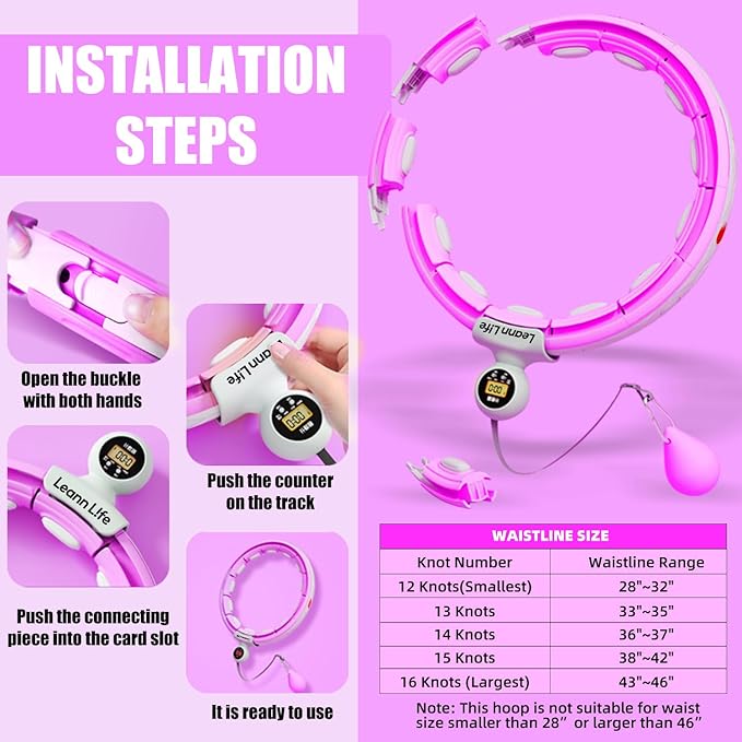 - ✅ 【BOX CONTENTS】: 16 knots hula hoops with 16+2 Spare pieces connecting pieces, smart counter with strap and weighted gravity ball, instruction manual.