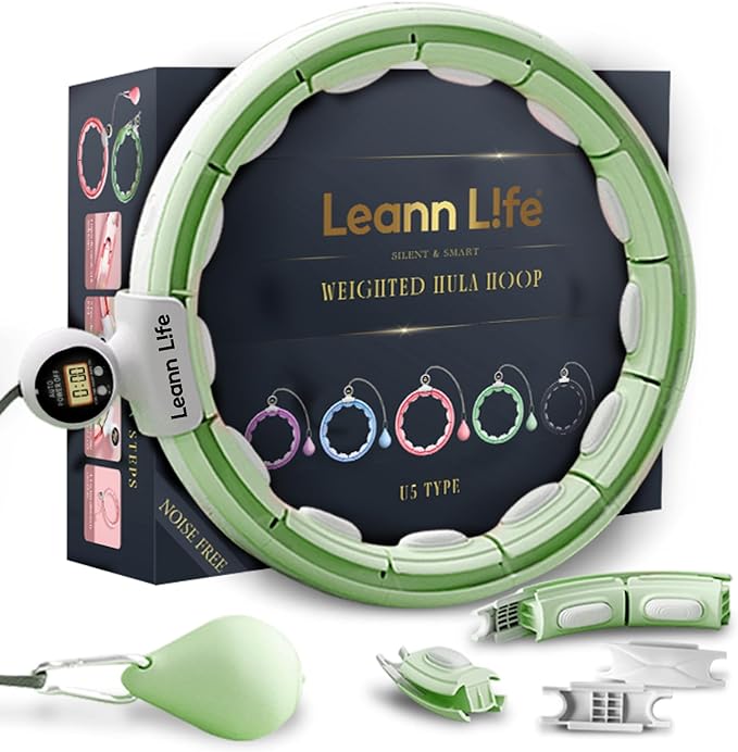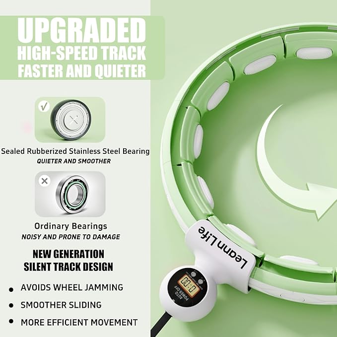 - 【MOST ADVANCE PREMIUM MATERIAL】: Leann L!fe’s newest and most advanced silent weighted hula hoop which made from premium ABS materials. Premium rubberized wheels instead of hard steel wheels. Gravity Ball made of soft rubber instead of hard plastic. Made this hoop more silent, smooth, and faster.