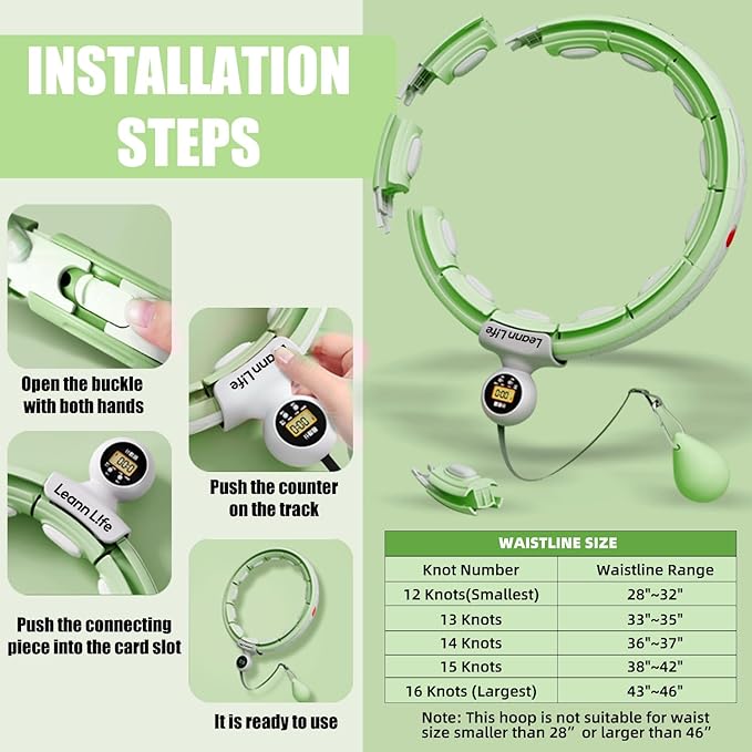 - ✅ 【BOX CONTENTS】: 16 knots hula hoops with 16+2 Spare pieces connecting pieces, smart counter with strap and weighted gravity ball, instruction manual.