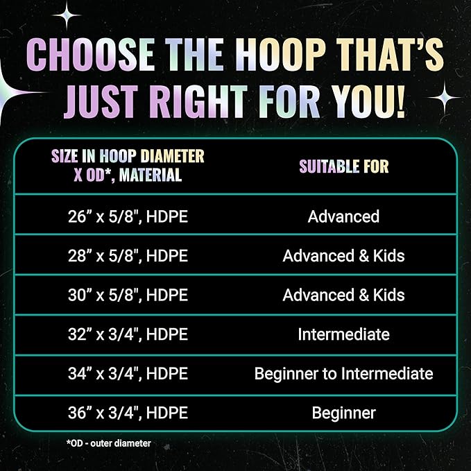 - ⭐Effortless Flow, Ultimate Comfort: Our hoola hoop toy is smooth, lightweight, and made for easy handling. Simply turn the hoop on or off easily with our snap button for a smoother performance. With collapsible LED hoop, 2 rechargeable batteries, charger, and instructions guide, our hoola hoop set has everything you need!