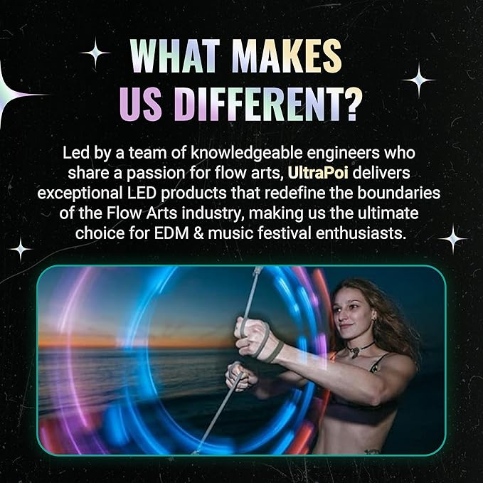 - ✨By Flow Artists, For Flow Artists: UltraPoi products are innovated by engineers who share the same love for the art. Our flow toys incorporate brilliant designs that ignite sensory exploration, enhance dexterity, and bring people together with the joy of flow.