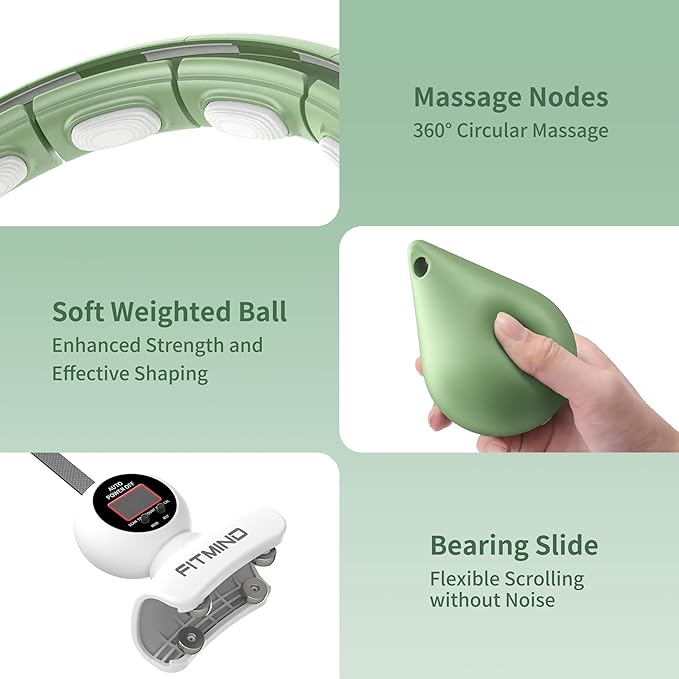 - 【NEW UPGRADED STRUCTURE WITH HIGH QUALITY】Exercise hoops with 362-degree all-round coverage massage head, deep massage muscles, help rapid weight loss, eliminate fatigue; The latest upgraded model of the silent fitness hoops, roller sliding without lagging, significantly reduce the noise, exercise more comfortable; PVC soft rubber material aggravated soft ball, doubling the effect of fat-burning.