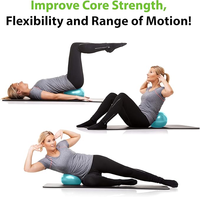 - VERSATILE - Use this small yoga ball for exercise and beyond! Stretch before a HIIT session, build core strength and flexibility on the mat, or place behind you while sitting in a chair for lumbar support.