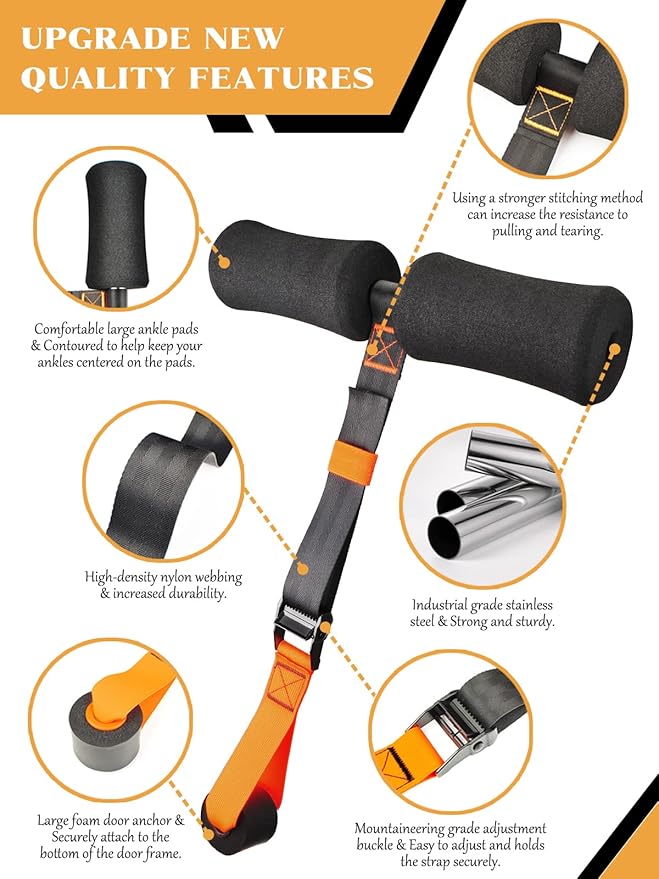 • Crafted from high-quality webbing and high-density sponge, the durable design ensures you can do hamstring curls in comfort and with total confidence. Setup takes seconds, eliminating the need for a hamstring curl machine, stretching equipment, or sit-up exercise equipment! Plus, with a compact and lightweight design, our workout straps are perfect for maintaining strength and fitness while on the go.