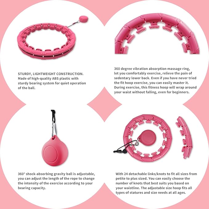 - ✭【How to Use】First,adjust the number of weighted fit hoops knots according to your waistline. Second,button up the lock. Third,adjust the length of the rope and twist the waist to make the ball turn.