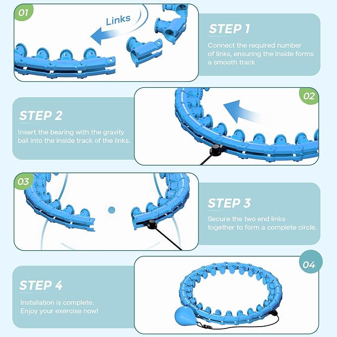 - 【Adjustable Size】: Fits waist sizes from 17 inches (43 cm) to 50 inches (125 cm) with 27 detachable links. Adjust the links to match your waist size, making this infinity fitness hoop perfect for weight loss and fitness.