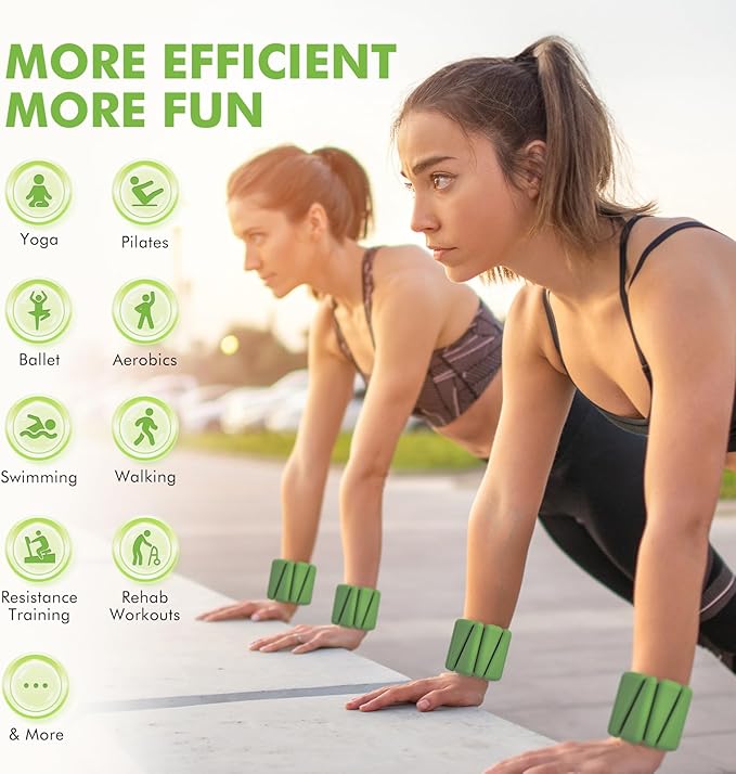 - [Multifunctional Exercise and Recovery Solution] These versatile, adjustable wrist and ankle weights take men's and women's workouts and recovery to new heights. The weighted bracelets can enhance Pilates, yoga, ballet, aerobics, boxing, walking, home workouts, core training, rehabilitation, etc. Consistent customizable challenges help burn more calories, improve flexibility, and enhance overall effectiveness of indoor and outdoor training and recovery.