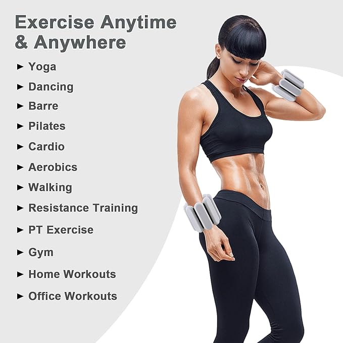 - [ONE SIZE FITS ALL] Specially designed ankle and wrist weights for women.The surface of the wrist weight bracelets is made of premium soft silicone material and built-in stainless steel ring,waterproof and sweat-proof design. offering exceptional flexibility and comfort.easy to clean and odor free,adjustable elastic velcro makes these wrist weights fit everyone.