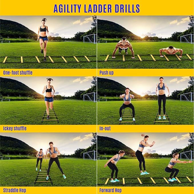 - BUILDING UP SPEED FOR ANY SPORT: Agility ladder and hurdles are great for a variety of sports, improving coordination, agility, great warm up exercises tool for soccer, football, basketball, tennis, and physical therapy