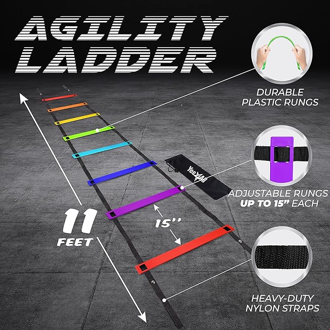 - BOOST FOOTWORK FOR VARIOUS TRAINING LEVEL: Exercise ladder is designed with 8, 12, and 20 rungs; Rung-to-rung distance can be adjusted up to 15 inches, making soccer equipment suitable for different skill sets levels; Instruction is included