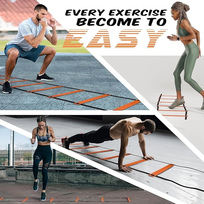 - FAST SET UP: Simply loosen the straps and rungs to set up on surfaces; Rung ladder doesn't take up much space but fun for training; A training ladder for footwork is a gift for soccer athletes, coaches, and fitness enthusiasts