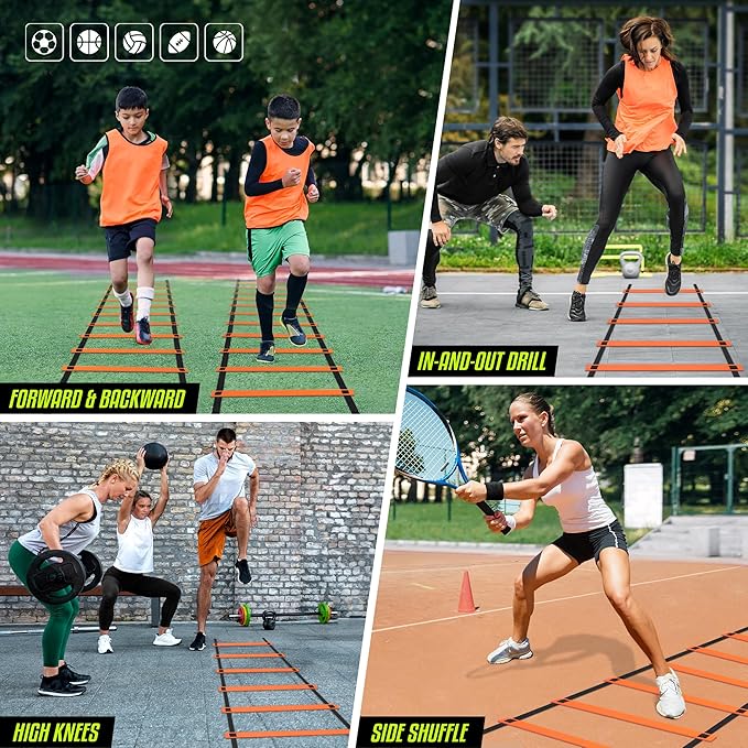 - BUILDING UP SPEED FOR ANY SPORT: Agility ladder and hurdles are great for a variety of sports, improving coordination, agility, great warm up exercises tool for soccer, football, basketball, tennis, and physical therapy