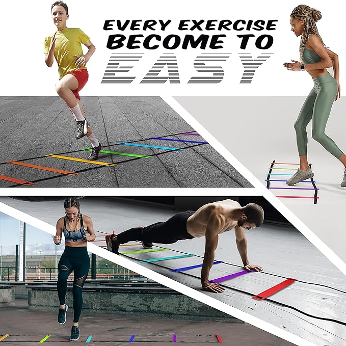 - FAST SET UP: Simply loosen the straps and rungs to set up on surfaces; Rung ladder doesn't take up much space but fun for training; A training ladder for footwork is a gift for soccer athletes, coaches, and fitness enthusiasts