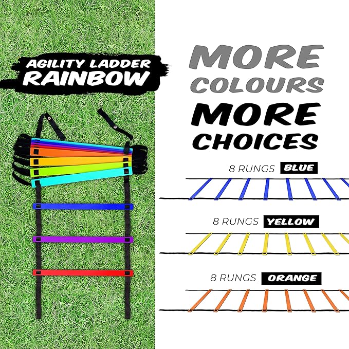 - BOOST FOOTWORK FOR VARIOUS TRAINING LEVEL: Exercise ladder is designed with 8, 12, and 20 rungs; Rung-to-rung distance can be adjusted up to 15 inches, making soccer equipment suitable for different skill sets levels; Instruction is included