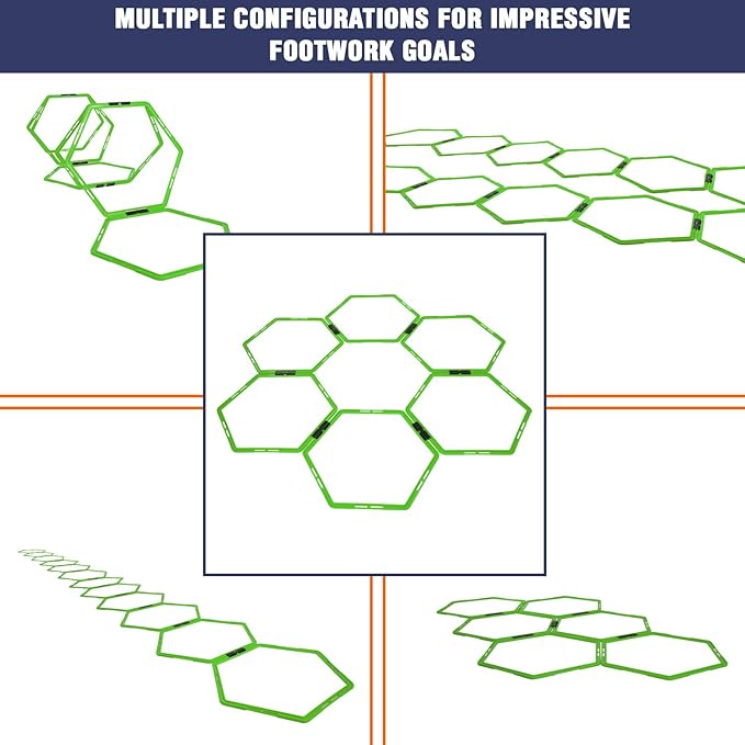 - SET OF 12 HEXAGON RINGS: This package includes 12 connected agility hexagon rings, each separate ring has a 19” diameter. Perfect agility training equipment for footwork training and agility training.