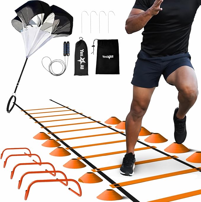 Yes4All Speed Training Equipment Set: 15ft Agility Ladder 5 Agility 12 Disc