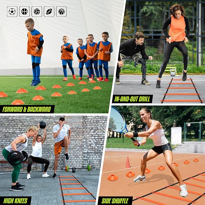 - BETTER ATHLETIC PERFORMANCE: Our agility ladder speed training equipment is perfect for athletes in a variety of sports, including soccer, football, basketball, hockey, lacrosse, tennis, and badminton. No matter what your sport or fitness level, our agility ladder speed training equipment can help you improve your performance. So why wait? Start training today and see the results for yourself!