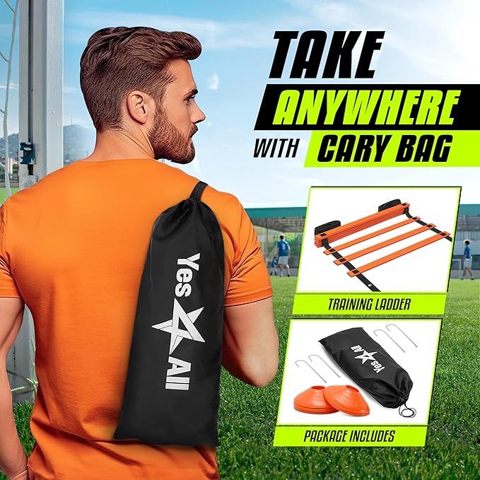 • INCLUDE A CARRY BAG: You can easily stash these agility ladder in carry bag to train anytime and anywhere that you want. Our agility training equipment are great for kids, athletes, and beneficial for older adults to workout, maintain balance and mobility.