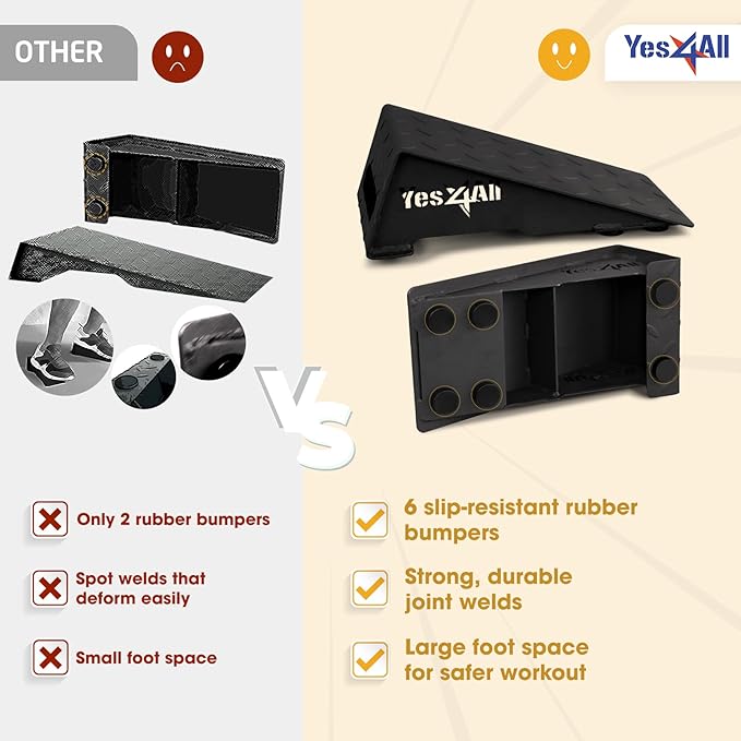 - UPDATED WITH SIX RUBBER BUMPERS: Besides a non slip surface texture, our squat wedge has been upgraded with six anti-slip rubber bumpers on the bottom; Preventing slipping and reducing unintended injuries, especially in the heel and back